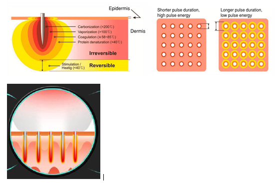 Для выполнения процедуры используется аппликатор с тончайшими позолоченными микроиглами (микроэлектродами) – проводниками биполярной RF-энергии, которая через микроскопические отверстия в коже доставляется на строго контролируемую глубину (0,5-3,5мм). Данная инновация позволяет одинаково эффективно воздействовать как на эпидермис, выравнивая микрорельеф кожи, так и на дерму, запуская выработку нового коллагена и эластина, что вызывает трехмерное ремоделирование кожи и ее подтяжку (лифтинг).