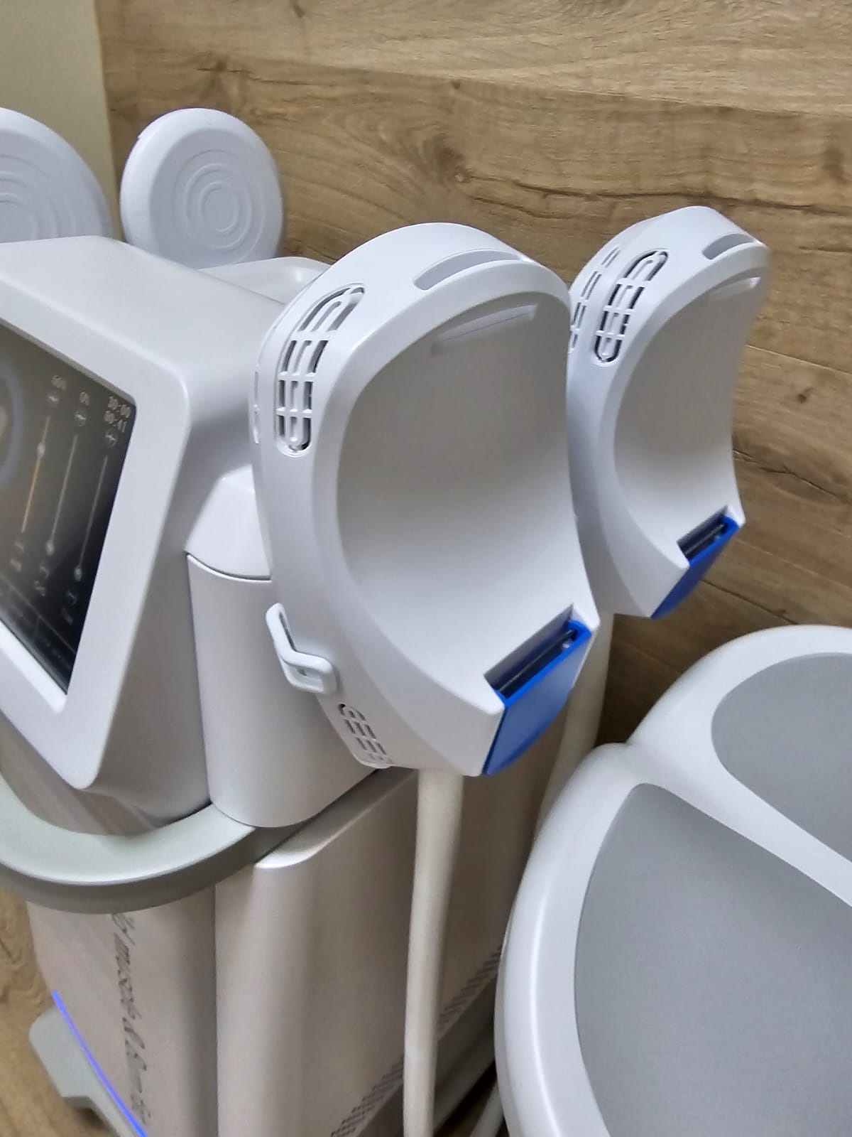 Оснащен 4 манипулами для тела , которые могут работать одновременно. В комплекте к аппарату прилагается специальный EMS «стул» для ягодиц.