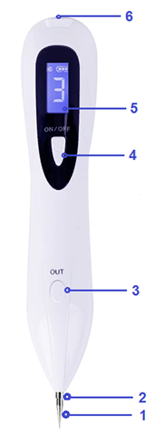4 - (ON/OFF) Включите / выключите питание удерживая кнопку в течение 3 секунд. Отрегулируйте интенсивность вывода плазмы с помощью кнопки (ON/OFF). При включении девайса на LSD экране отображается интенсивность вывода плазмы, по умолчанию 2.