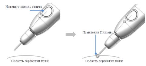 Процедура после выбора уровня мощности. Выберите уровень мощности между 3~4. Зажмите кнопку Старта и подведите кончик иглы с расстояниям в 1мм. к проблемному участку для появления Плазмы.