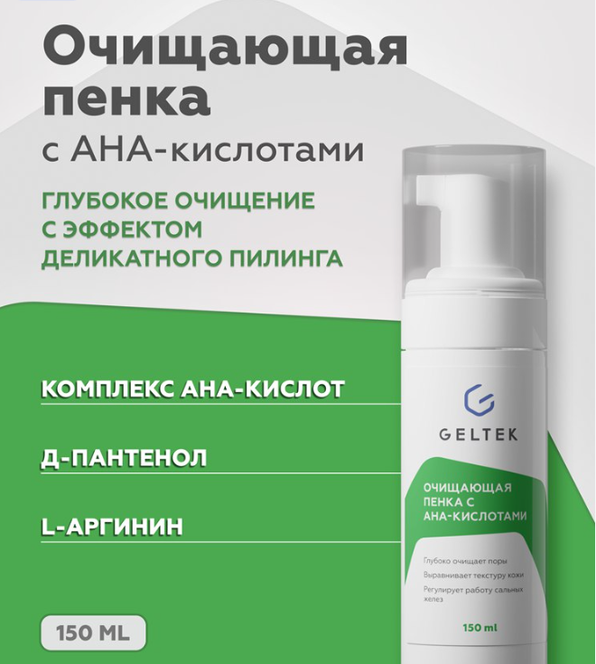 Активы: AHA-кислоты, Д-пантенол, L-аргинин